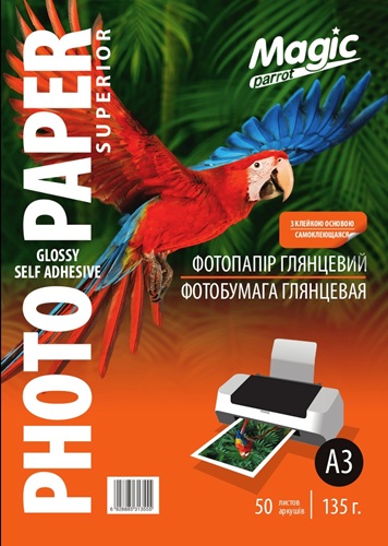 Самоклеющаяся бумага для струйной печати. Используется для печати цветных изображений и фотографий, стикеров, ценников, объявлений.