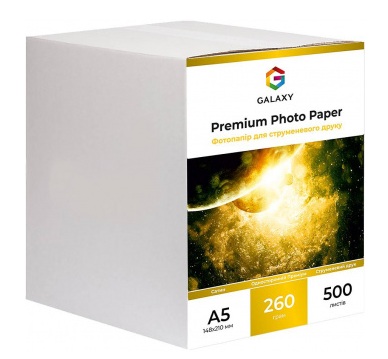 Фотобумага премиум сатин Galaxy А5 имеет высокую плотность листа 260 г/м2 и микропористую многослойную структуру, благодаря чему чернила мгновенно впитываются и быстро закрепляются. При печати можно использовать водорастворимые или пигментные чернила.
